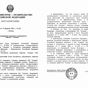 Министерство газовой промышленности СССР преобразовано в Государственный газовый концерн «Газпром». 5 ноября подписан указ президента Российской Федерации «О преобразовании ГГК «Газпром» в Российское акционерное общество «Газпром»». 17 февраля 1993 года выходит соответствующее постановление правительства Российской Федерации.